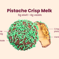 Suiker,wei-eiwitconcentraat, tapioca vezel, vollemelkpoeder, plantaardige olie (zonnebloem, palm, palmpit, kokos),bevochtigingsmiddel: glycerol, cacaoboter, cacaomassa,tarwebloem,pistachepasta, geconcentreerdeboter, mageremelkpoeder,weipoeder, volledig gehard vet (koolzaad), glucosestroop,emulgatoren: lecithine (zonnebloem,soja), citroenzure esters vanmono- en diglyceriden van vetzuren, kleurstoffen: karamel,kopercomplex van chlorofyl, curcumine, patentblauw V, zout,gerstemoutextract, watervrijmelkvet, aroma’s, glansmiddel:bijenwas, natuurlijk vanille-extract.
