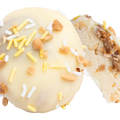 Onze nieuwste fav! Een Vanillebasis met pinda's, gevuld met witte chocopasta en een dotje pindakaas. Gecoat met witte chocolade en afgetopt met stukjes pinda. Puur genieten!
