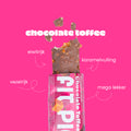 Een vanille basis, gevuld met karamel en gecoat in melkchocolade en besprekeld met kleine stukjes toffee. Nu met 18 gram eiwit per reep!